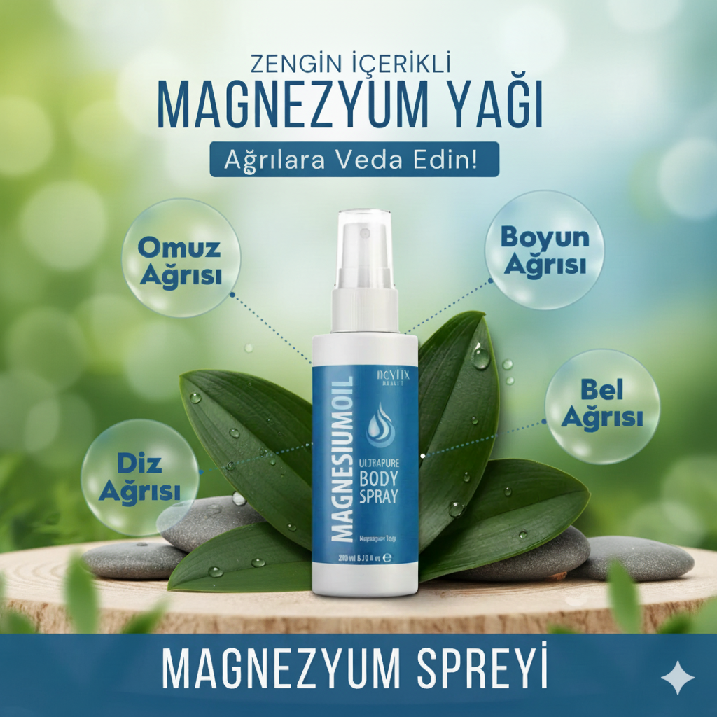 Doğadan gelen saf magnezyum, özel formülü sayesinde cilde hızla nüfuz eder, kas ve eklem ağrılarını hedef alarak rahatlama sağlar.